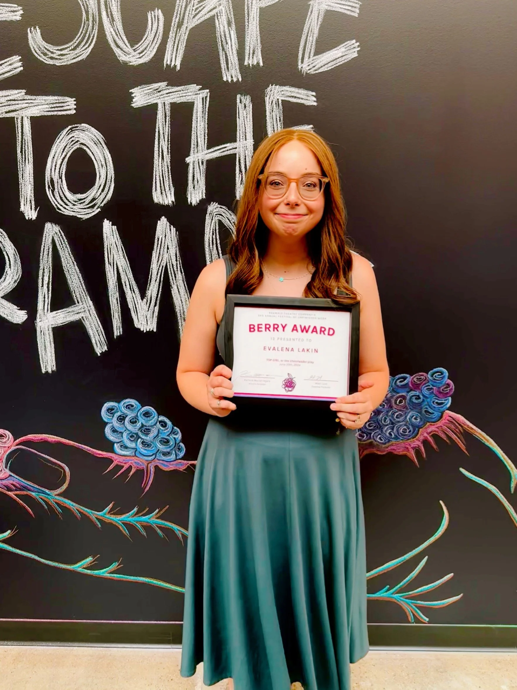 My play, TOP GIRL, or the cheerleader play, won the Berry Award for Bramble Theatre Company’s 2024 Festival of Unfinished Work! During the festival, audiences voted for which plays they’d like to see developed further. As one of the winners, I had the opportunity to continue to work on the script with Bramble, culminating in a staged reading of the full play on April 7th, 2025.
